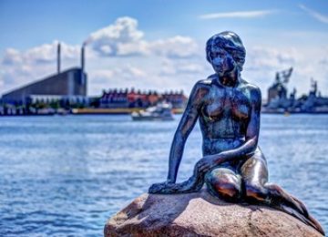 Sortida del punt d´origen amb autocar direcció a l´aeroport de Barcelona. Tràmits de facturació i embarc al vol amb destinació Copenhague. Arribada, trobada amb el guía local per començar la visita a la ciutat. En primer lloc, farem una Panoràmica, Podrem contemplar els punts més espectaculars de la capital danesa com la font de Gefion, la Residència Reial d'Amalienborg, els canals de Nyhavn, amb nombrosos restaurants i cafès i vaixells de fusta, el Palau de Christiansborg i el personatge d'un dels contes de fades més famosos de l'escriptor danès Hans Christian Andersen; la Sireneta. Dinar en restaurant. A la tarda, visita a peu per conèixer de ben aprop la sireneta , el famós port amb les façanes de les cases pintades de colors, i la part monumental. A la hora indicada, trasllat a l´hotel, acomodació, sopar i allotjament.