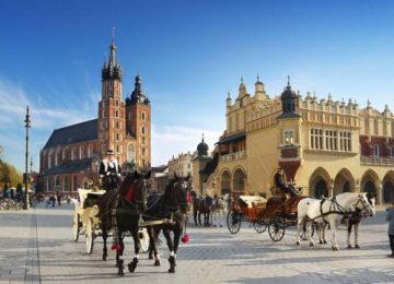 Sortida del punt d´origen direcció l´aeroport de Barcelona. Tràmits de facturació i embarc al vol amb destinació Cracòvia. Arribada i trasllat al centre per dinar en restaurant. A la tarda, visita al centre de Cracòvia amb la plaça del Mercat, Plaça Medieval más gran d´Europa . A la hora indicada, Trasllat a l´hotel, sopar i allotjament.